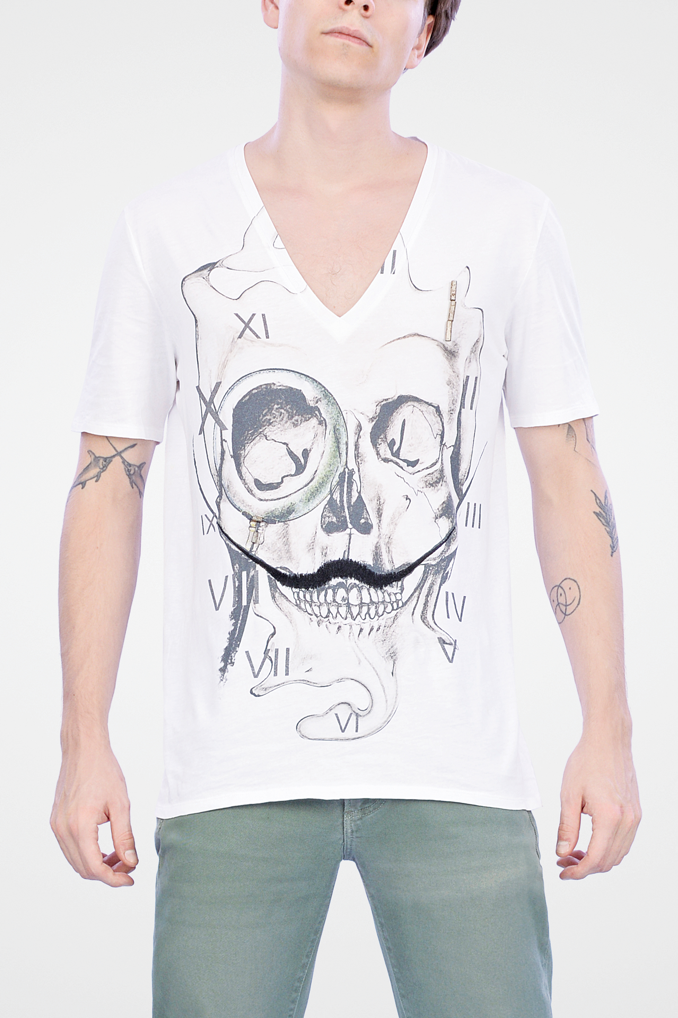 Web Denim R2R002 Off White Printed Tee Specifications: Brand - Web Denim Type - Knit Tee Fabric Composition - 100% Cotton Color - Off White Pattern - Slim Neck - V Neck Fit - Slim Fit